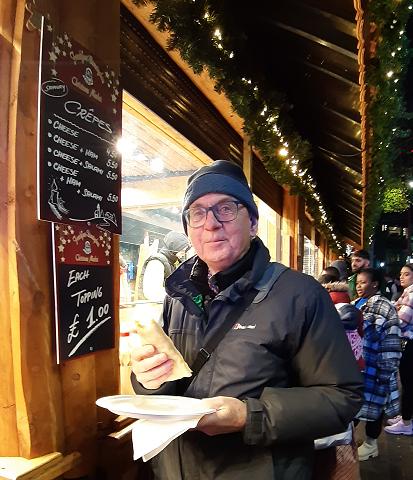 Time to eat: Crepes seem to be what's available. Serviettes with Christmas