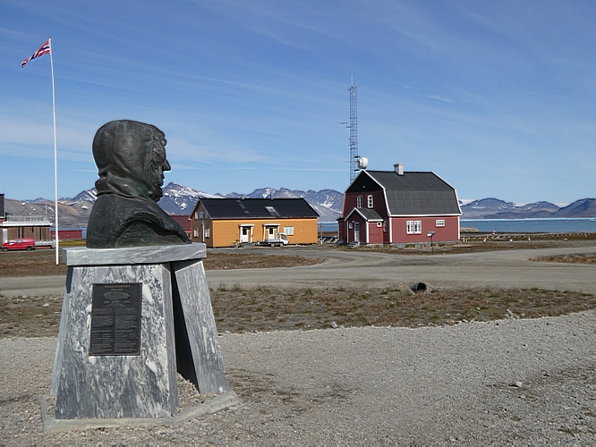 Roald Amundsen Bust and his house (on right)