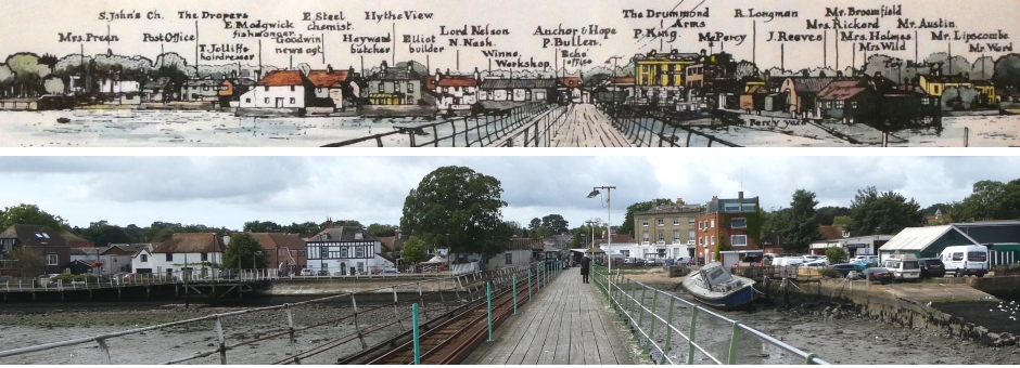 Looking down the pier with 1963 labelling from drawing in "The Lord