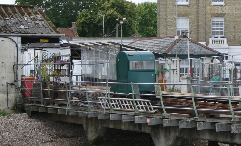 Electric train awaits to transport to pier "town end" (optinal)