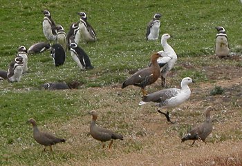 We set off across the sand dunes and our first encounter was at a pond with geese and Magellanic penguins sharing the same space. The Magellanic are burrowing penguins, in that their nests tend to be a bit like rabbit warrens. We waited ages for one of them to demonstrate that they were underground penguins, and eventually one went in its "house"