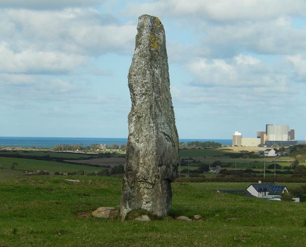 Stone with Wylfa Nuclear Powe Station in the background (decommissioned)