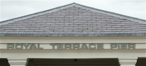 Long view showing ferry from Town Pier, the Royal Terrace Pier and docked